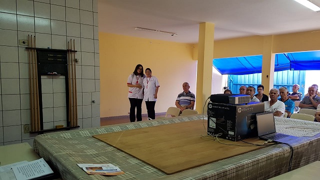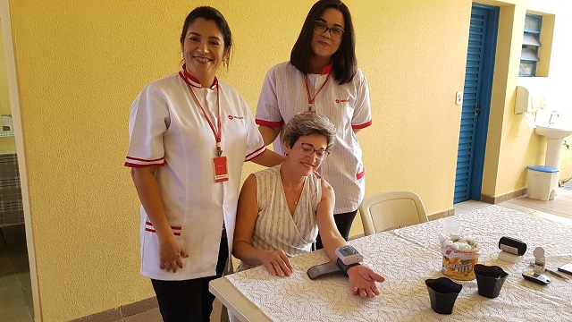 A reunião de São José do Rio Preto teve a presença das farmacêuticas Elo e Patrícia, representando a Drogasil, auferindo a pressão e medindo a glicemia dos associados presentes.