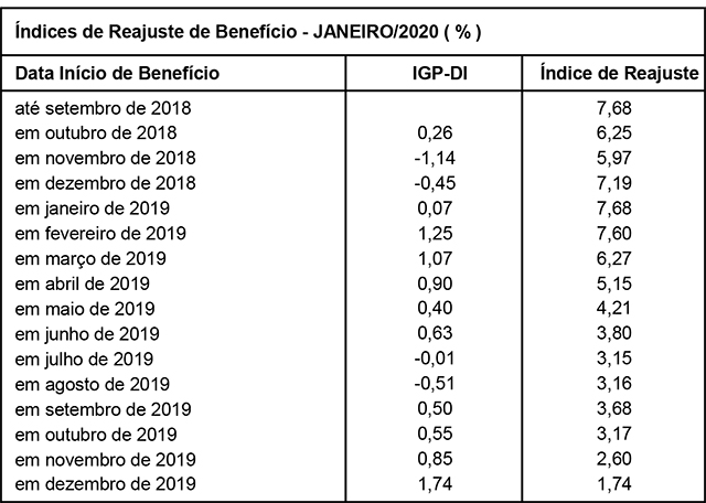 Os benefícios recebidos pelos aposentados e pensionistas dos planos PSAP/CESP-B1, PSAP/EMAE, PSAP/CTEEP, PSAP/Tietê, PSAP/Elektro e PSAP/Piratininga terão reajuste no mês de janeiro de 2020. Para os outros planos, a correção acontecerá em junho deste ano.